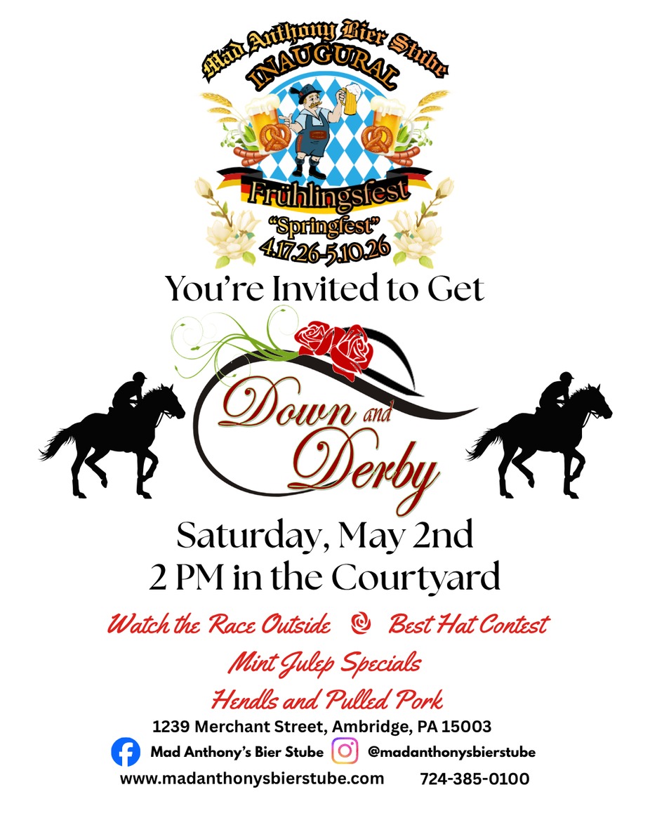 📺 Catch the “Run for the Roses” live on our outdoor TV and soak in the excitement with great food, drinks, and company.