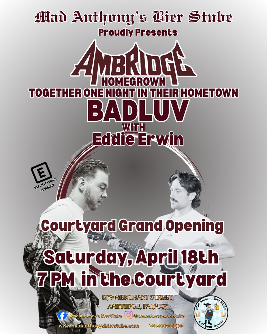 Join us for the Courtyard Grand Opening featuring Ambridge's own BADLUV with Special Guest Eddie Erwin.