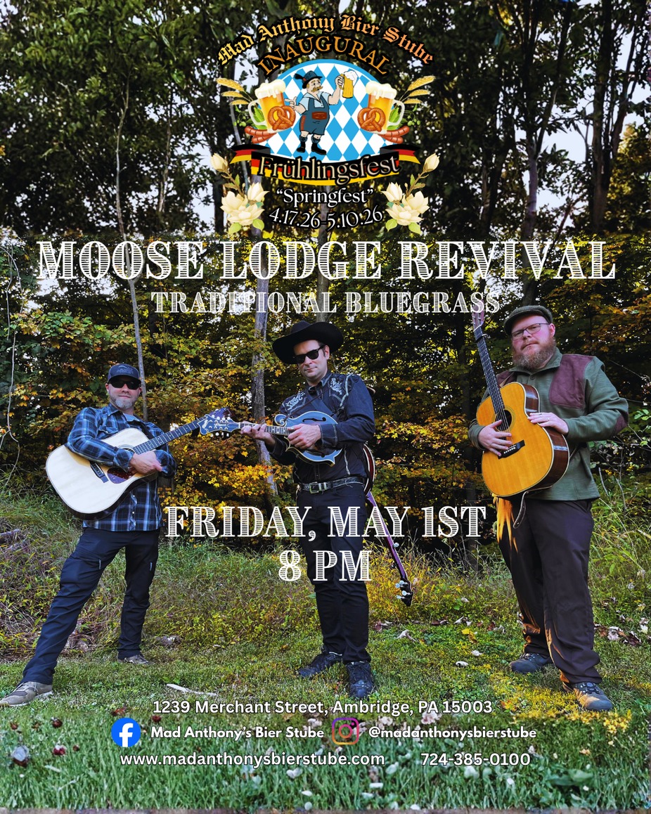 A trio from Moose Lodge Revival is bringing the sounds of traditional bluegrass to the courtyard! Grab a bite, sip on a cold bier (or your favorite spirit), and kick back while the music sets the vibe. Good tunes, great drinks, and even better company — don’t miss it! 🎶