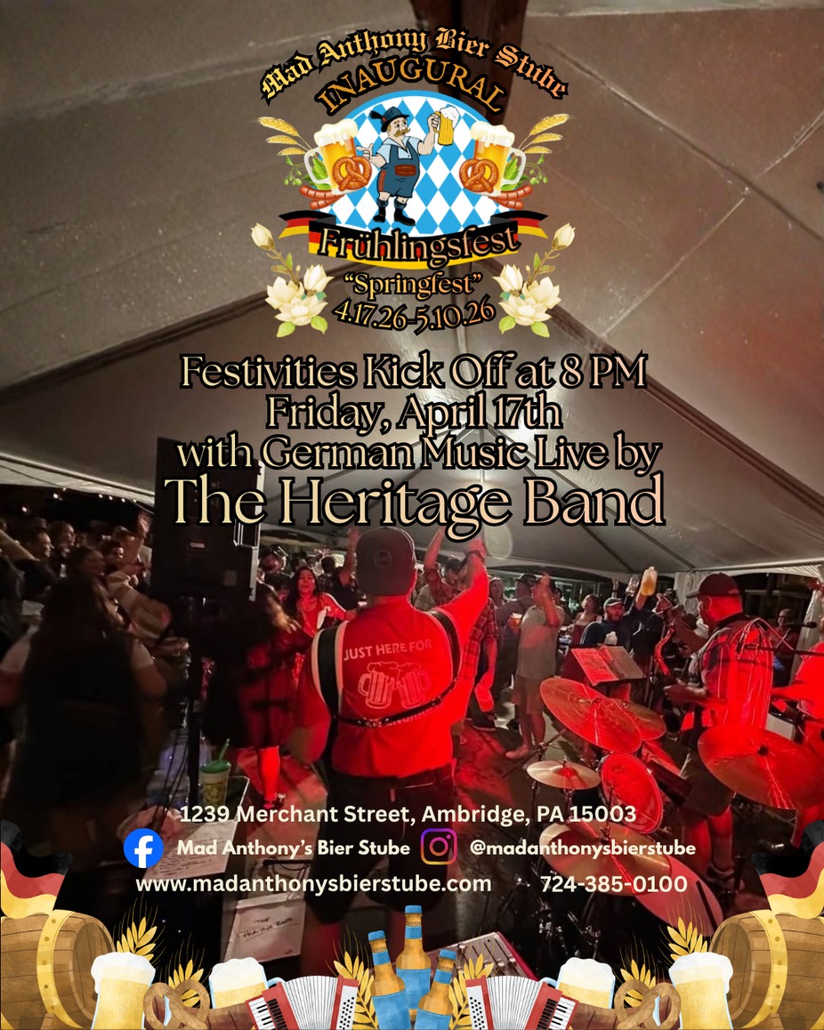 The Heritage Band will kick off our inaugural Springfest in the courtyard with classic German tunes. Enjoy authentic German food, cold biers, and the vibrant sounds of the motherland as we get Frühlingsfest underway.