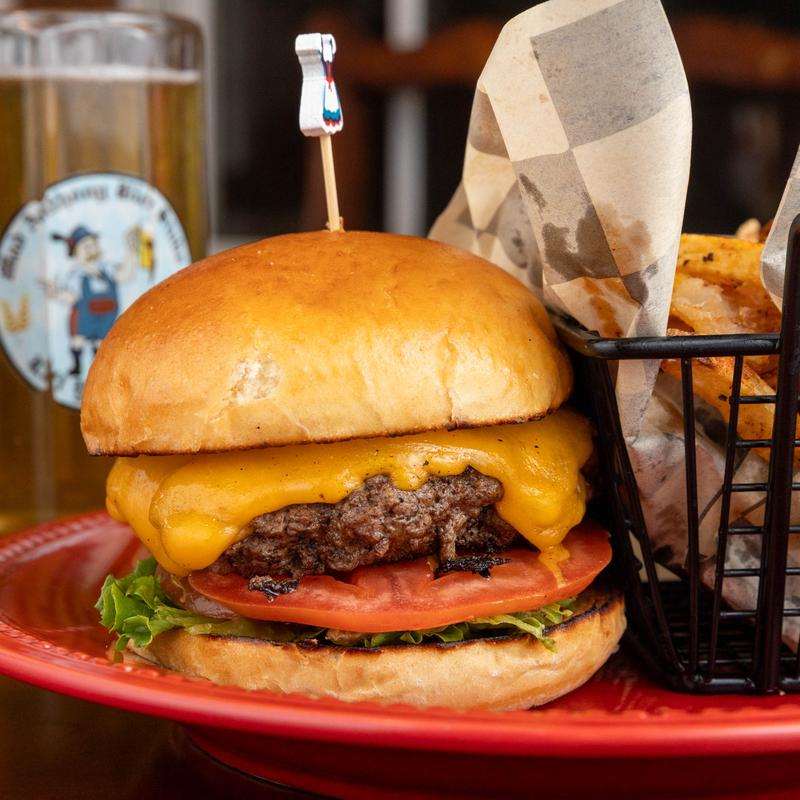 8 oz. burger served on a brioche bun with choice of cheese, lettuce, tomato & onion | Add Bacon +$1.50