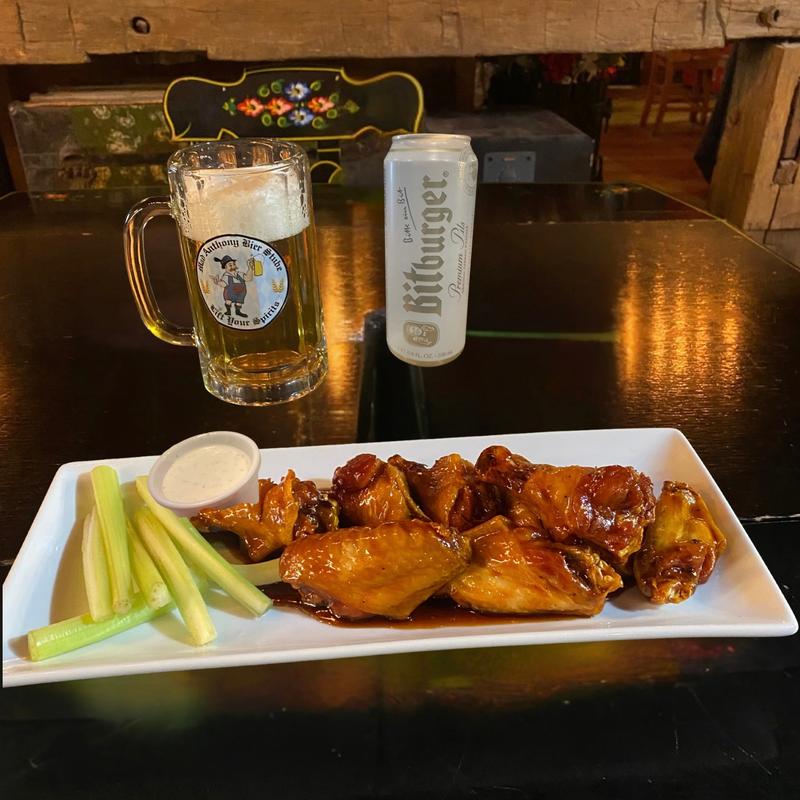 10 jumbo cut wings, served with: Celery & Ranch, Classic Hot, House-Made Jim Beam Double Oak BBQ Sauce, Our Secret Mad Dust