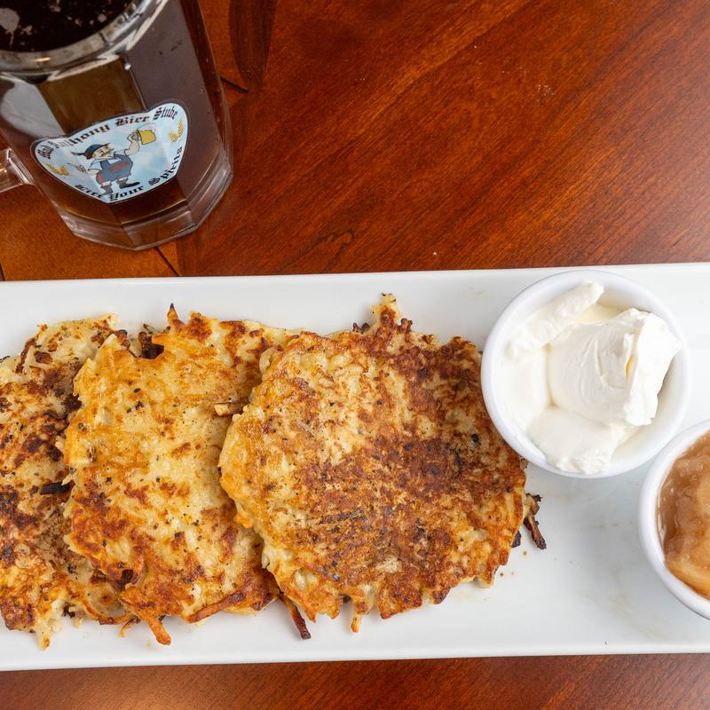 Served with applesauce & choice of German potato salad or spätzle.