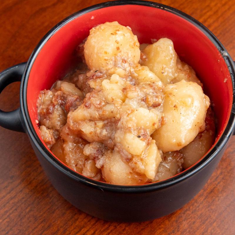 House-made authentic German vinegar-based potato salad, served warm with bacon & caramelized onion